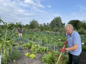 juli 2025 – de kinderen hebben schoolvakantie. Ze zijn nog een keer teruggeweest om van alles te oogsten in hun tuintje. Ze hadden wel pech, want het regende pijpenstelen. Maar de echte diehards lieten zich niet weerhouden om hun zelfgekweekte groenten te oogsten en daar thuis heerlijk van te genieten. Intussen groeit er nog heel veel in de Smikkeltuin. De opa’s schoffelen het onkruid tussen de bedden, zodat alle planten volop kunnen groeien. En roepen de kinderen op om al het lekkers te komen oogsten.