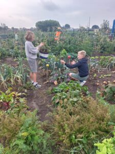 19 september 2025 – in de grote vakantie is er elke week wel een pluk- en oogstavond georganiseerd. Want…. planten houden geen vakantie, maar groeien gewoon lekker door. Zeker met dat prachtige zomerweer met af en toe een flinke bui. En natuurlijk met de hulp van de opa’s die de tuintjes in de gaten hielden, en zo nodig toch wat water gaven of met de schoffel aan het werk gingen.