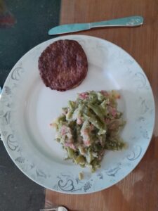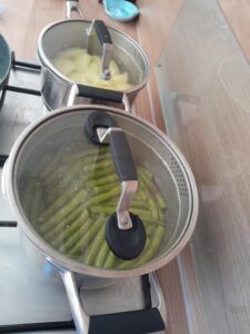 Joost maakte een overheerlijke stamppot van aardappels, spekjes en zelfgekweekte sperzieboontjes.