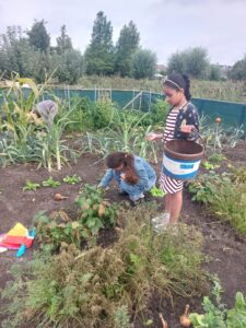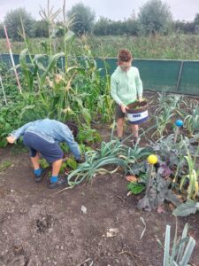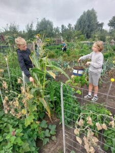 19 september 2025 – in de grote vakantie is er elke week wel een pluk- en oogstavond georganiseerd. Want…. planten houden geen vakantie, maar groeien gewoon lekker door. Zeker met dat prachtige zomerweer met af en toe een flinke bui. En natuurlijk met de hulp van de opa’s die de tuintjes in de gaten hielden, en zo nodig toch wat water gaven of met de schoffel aan het werk gingen.