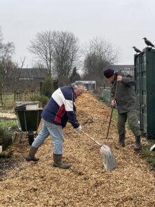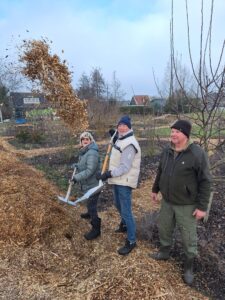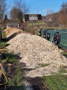 15 januari 2026 – er zijn flinke vrachten boomsnippers gelost in de tuin (bedankt Meerlanden voor deze gratis snippers) om de paden te voorzien van een nieuwe strooisellaag. Het hele hoofdpad ligt vol. In de komende weken worden de paden door onze stoere vrijwilligers van een verse laag boomsnippers voorzien.