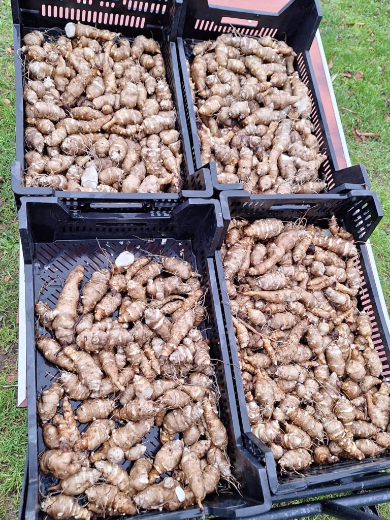 Boen de aardperen goed schoon en snijd ze in stukken of schijfjes van 2 cm dik. Maak de prei schoon en snijd deze in brede ringen. Kook de groenten samen in een laagje water met een klontje boter en (kruiden)zout beetgaar. Bind het het kookvocht in een sauspannetje met roux. Voeg al roerende de geraspte kaas, kerrie, geperste knoflook en peper naar smaak toe en blijf roeren tot er een gladde saus ontstaat. Dien de groentemix op met een gekookte graansoort en serveer de saus erover.